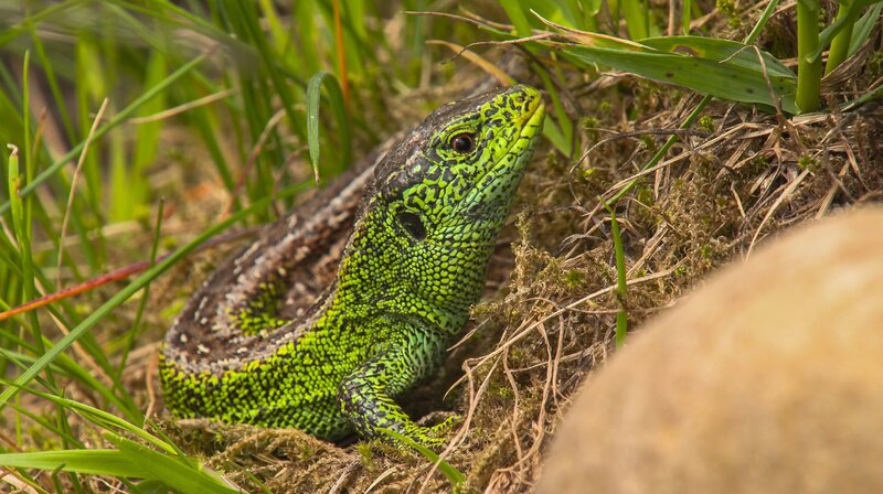 Die Männchen der Zauneidechse sind kräftig grün gefärbt.Bild: © NDR/NDR Naturfilm/Doclights/Uwe Anders