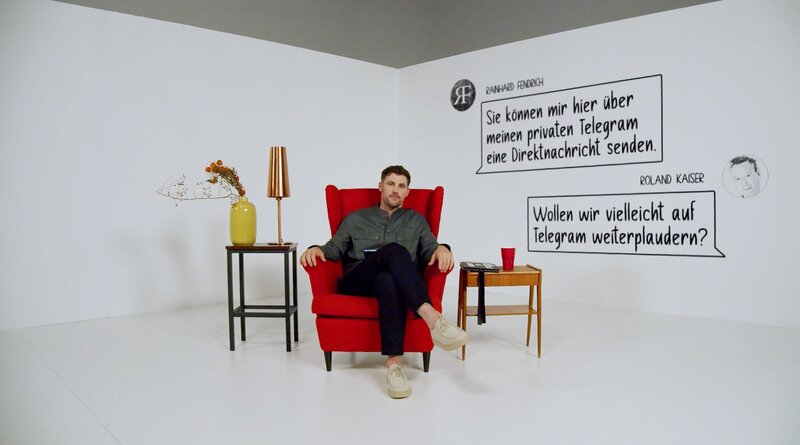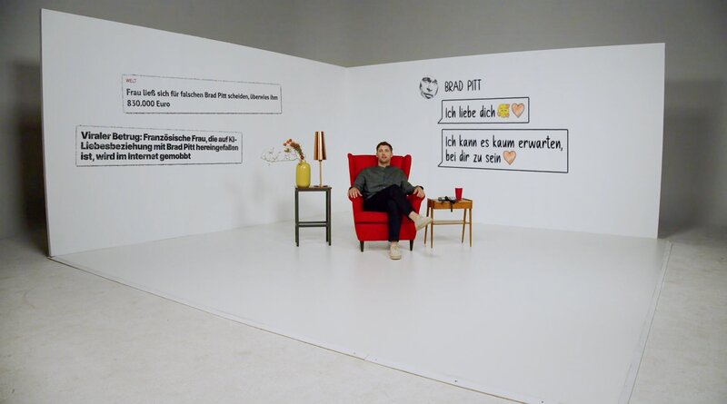 Ferdinand Seebacher - über die Geschichten und Nachrichten der Love Scams mit Grafiken.Bild: © GALORE FILMS e. U./HolyScreen Media / ORF