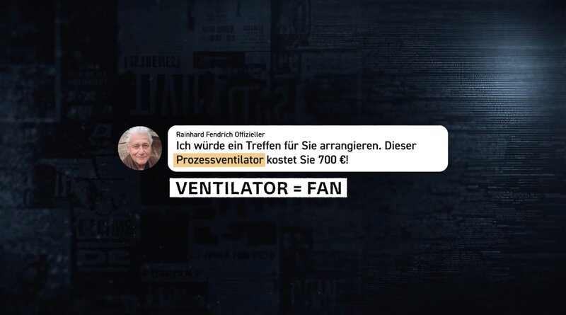Fake-Fendrich: „Okay, ich würde ein Treffen für Sie arrangieren. Dieser Prozessventilator kostet Sie 700 €!“ Prozessventilator? Auf Englisch heißt Ventilator „Fan“. Gemeint ist wohl eine Art Fan-Package-Bearbeitungsgebühr. Alexandra tut aber so, als würde sie die sprachlichen Unebenheiten nicht bemerken.Bild: © GALORE FILMS e. U. / ORF