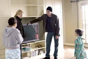 Dick (Jim Carrey, 2.v.r.) präsentiert seiner Familie die neueste Anschaffung: den ultimativen HD-TV-Flachbildfernseher ...Bild: © Turner / SONY PICTURES TELEVISION