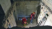 Zwei Sprengmeister platzieren den Sprengstoff im Mauerwerk, um das betreffende Gebäude kontrolliert zum Zusammenbruch zu bringen.Bild: © WeltN24 GmbH
