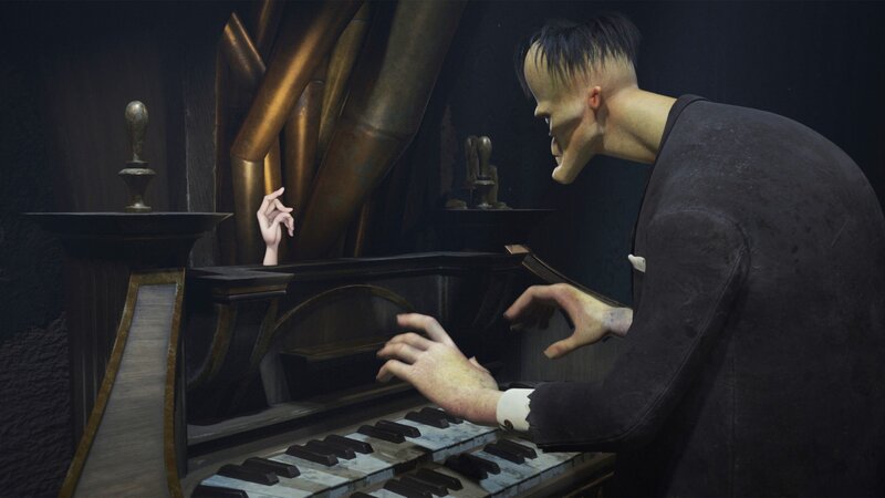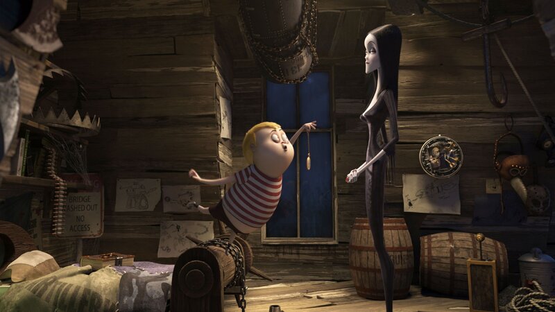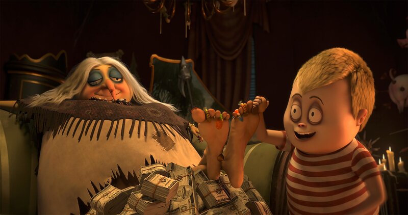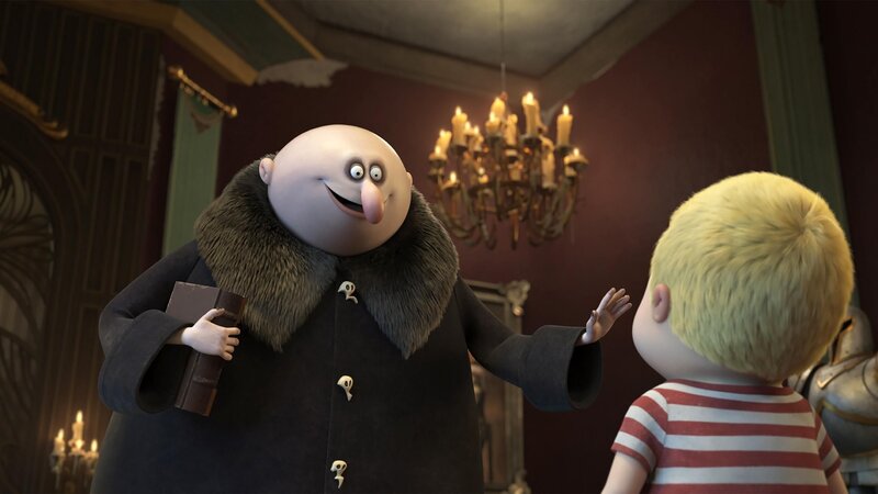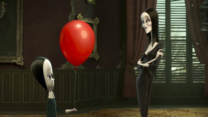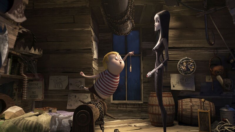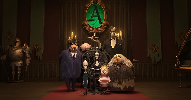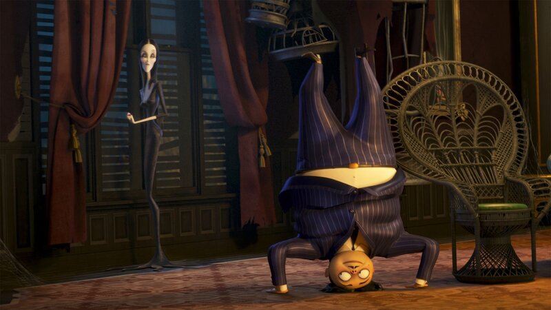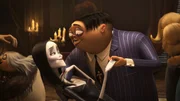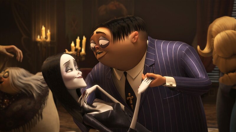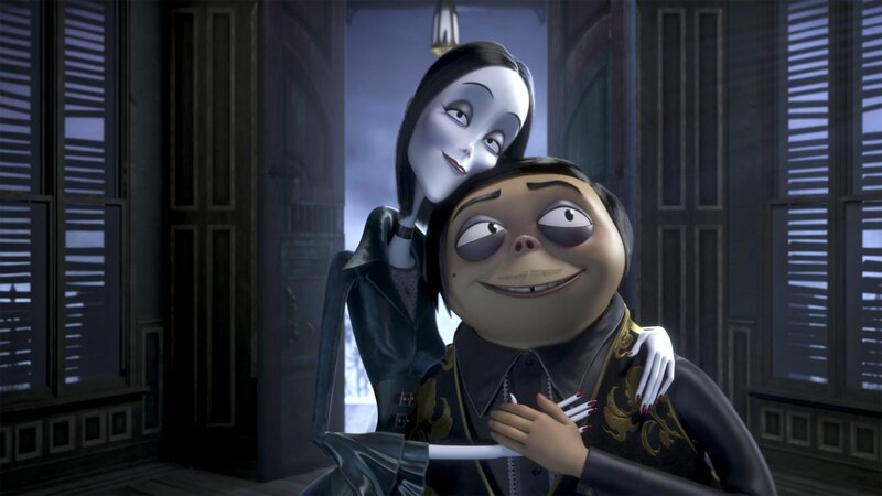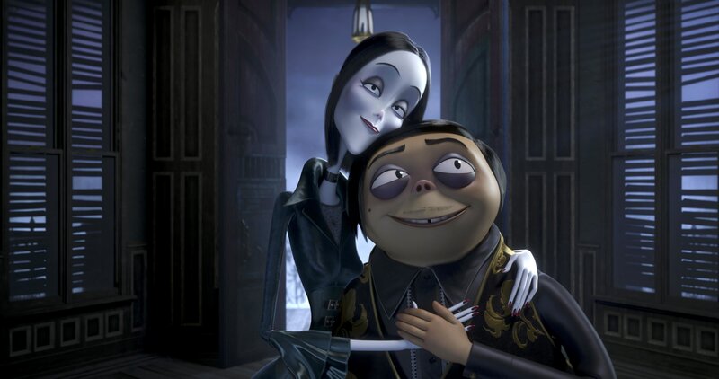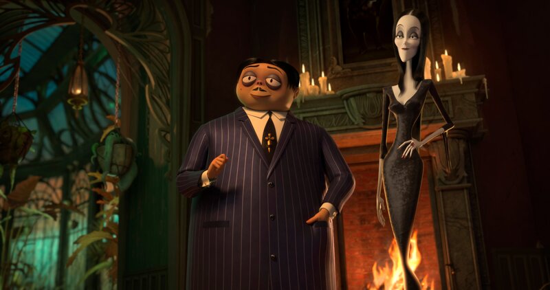 Oscar Isaac as the voice of Gomez Addams (left) and Charlize Theron as the voice of Morticia Addams (right) in THE ADDAMS FAMILY