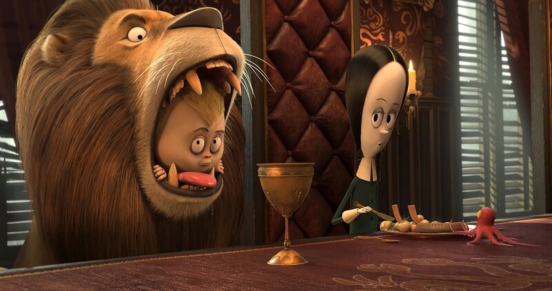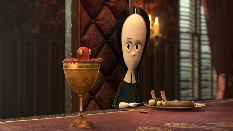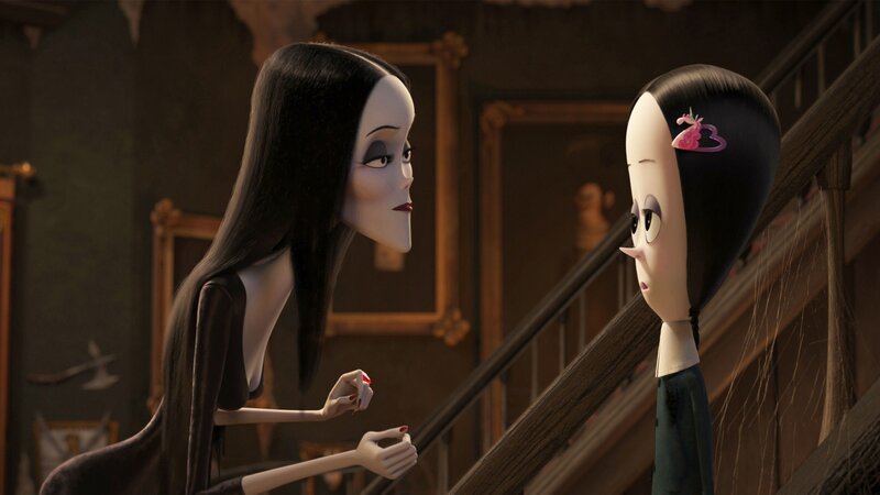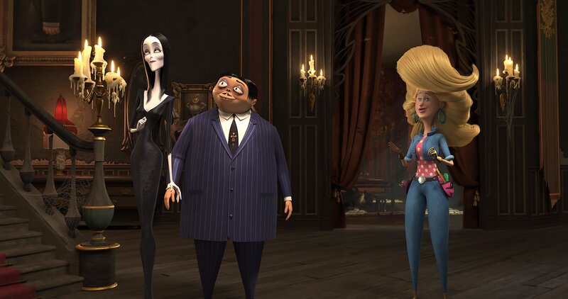 (L to R) Pom Klementieff as the voice of Layla & Kayla, Chloë Grace Moretz as the voice of Wednesday Addams and Elsie Fisher as the voice of Parker in THE ADDAMS FAMILY