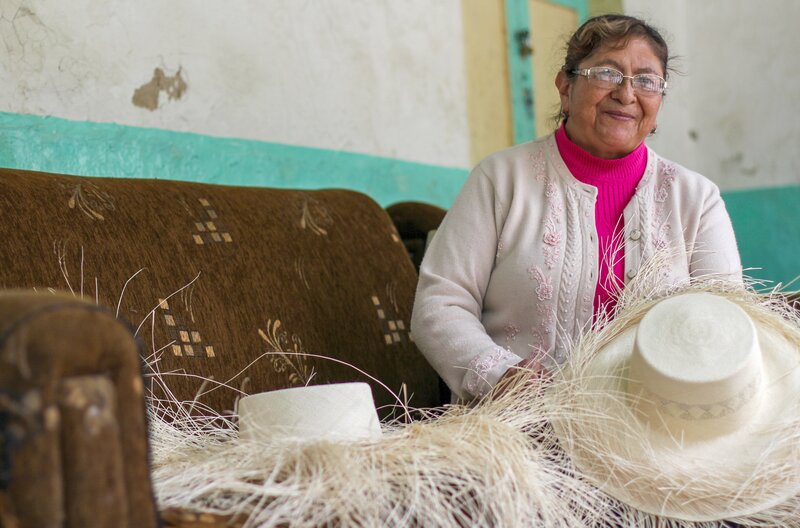 Handgeflochtenes Kulturgut mit Weltruhm: Eine Woche arbeitet Flechterin Rosa an einem traditionellen Panama-Hut aus Toquilla-Palmstroh.Bild: © Benjamin Arcioli
