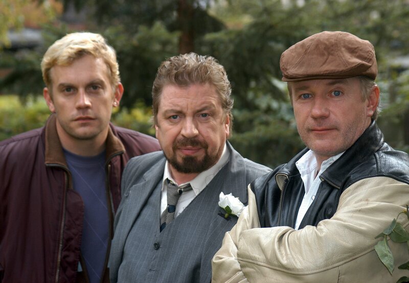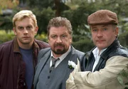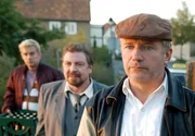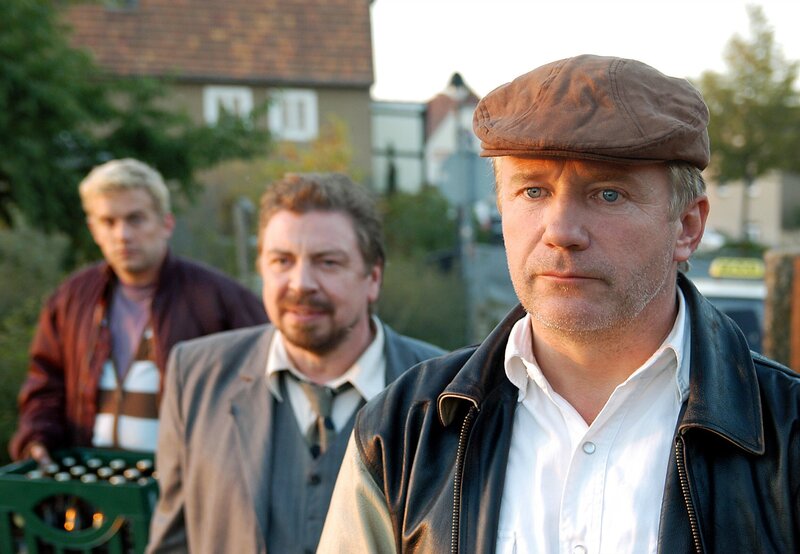 Ein schräges Gauner-Trio: Werner Blücher (Armin Rohde, Mitte) mit seinen alten Kompagnons Andy (Jörg Schüttauf, re.) und Ollie (Sebastian Bezzel).Bild: © MDR/ARD Degeto/Hans-Joachim Pfeiffer