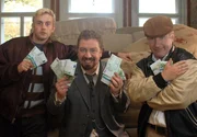 ARD DIE BLÜCHERBANDE, Deutschland 2009, Regie Udo Witte, am Montag (13.06.11) um 16:15 Uhr im Ersten. Werner (Armin Rohde, li.), Andy (Jörg Schüttauf, Mitte) und Ollie (Sebastian Bezzel) können ihren Millionen-Coup noch immer nicht glauben.Bild: © ARD Degeto/Hans-Joachim Pfeiffer