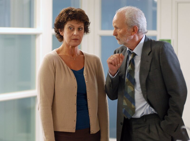 ARD DIE BLÜCHERBANDE, Deutschland 2009, Regie Udo Witte, am Montag (13.06.11) um 16:15 Uhr im Ersten. Kriminaldirektor Kahnweiler (Michael Gwisdek) belehrt Hauptkommissarin Schmitz-Kesselhoff (Mona Seefried).Bild: © ARD Degeto/Hans-Joachim Pfeiffer