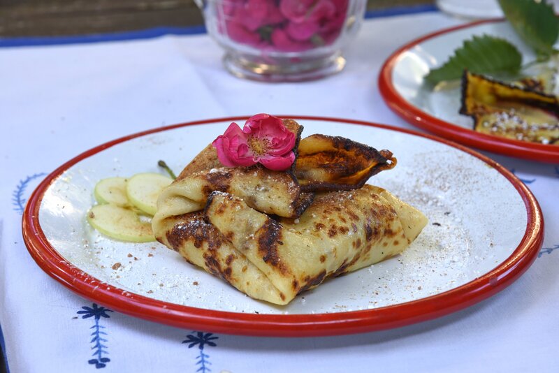 Milch, Eier, Mehl und Fett zum Braten: daraus zaubert man in Österreich Palatschinken, in Deutschland Pfannkuchen und auch in anderen Ländern sind die Teigfladen aus der Pfanne beliebt. Anita Lackenberger macht sich in Österreich und den Nachbarstaaten auf die Suche nach traditionellen und kreativen Palatschinken-Rezepten. Gefüllt werden die zarten Teigfladen mit Marmelade, Topfen oder Schokoladensauce, bestreut mit gehackten, gerösteten Nüssen und mit Staubzucker, garniert mit einem Tupfer Schlagobers. Das Lieblingsessen vieler Kinder gibt es auch in pikanten Varianten etwa mit Fleisch- oder Spinat-Käse-Füllung. Süße wie salzige Varianten werden vielerorts im Backofen überbacken. Eine klassische Variante der Wiener Küche sind die Frittaten: in dünne Bahnen geschnittene Palatschinken, die in einer herzhaften Rindsuppe am besten schmecken und in österreichischen Gasthäusern und Restaurants zum Standard-Repertoire gehören. Trennt man die Eier und schlägt das Eiklar zu Schnee, wird aus dem Palatschinkenteig die Basis für Kaiserschmarren. Dabei wird der flaumische Teig ebenfalls in der Pfanne von beiden Seiten angebraten, dann aber während des Bratvorgangs mit der Gabel zerrissen und erhält so sein bröckeliges Aussehen. Serviert mit Zwetschgenröster ist er ein Klassiker der österreichischen Mehlspeisküche.