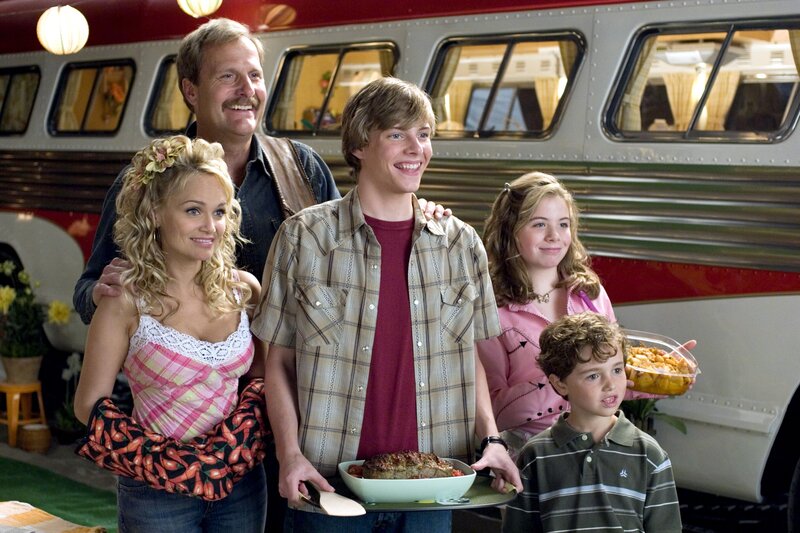 Ferien im Wohnmobil: Bob (Robin Williams, r.), Jamie (Cheryl Hines, l.), Cassie (Joanna Levesque, 2.v.r.) und Carl (Josh Hutcherson, 2.v.l.) ...Bild: © ORF/Joe Lederer
