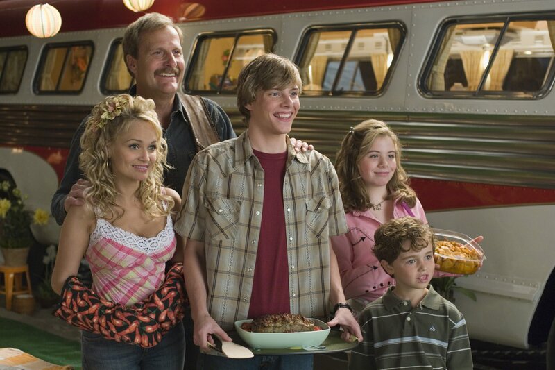 Kristin Chenoweth (Mary Jo Gornicke), Jeff Daniels (Travis Gornicke), Hunter Parrish (Earl Gornicke), Chloe Sonnenfeld (Moon Gornicke), Alex Ferris (Billy Gornicke).Bild: © ORF/Sony Pictures/Joe Lederer