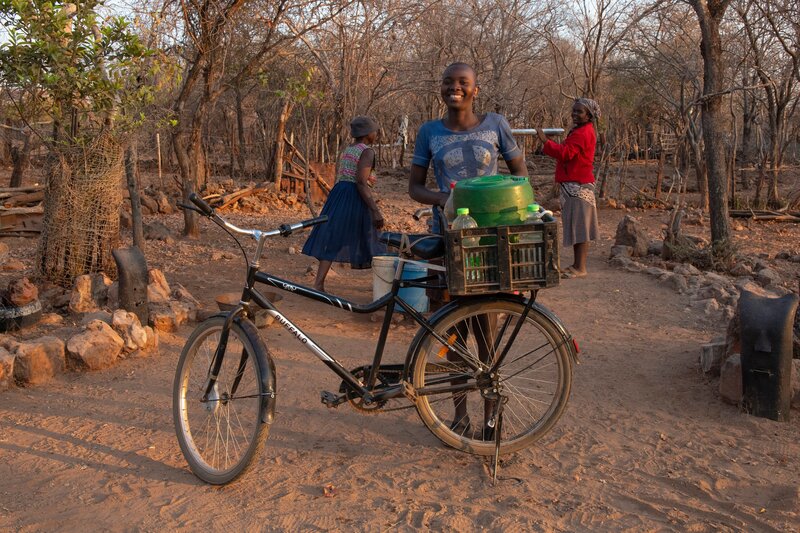 Die einheimische Dorfbevölkerung muss oft lange Strecken bis zum nächsten Brunnen zurücklegen. Stabile Fahrräder helfen den Menschen dabei, die schweren Lasten zu transportieren.