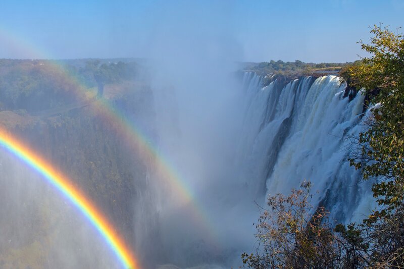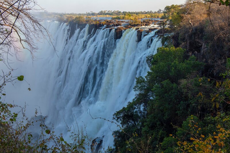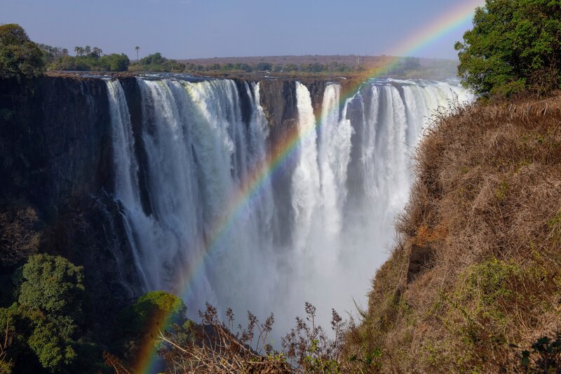 Die Victoriafälle gehören zu den spektakulärsten Naturwundern Afrikas. Auf einer Breite von rund 1700 Metern stürzen die Wassermassen in die Tiefe – kein anderer Wasserfall ist breiter.