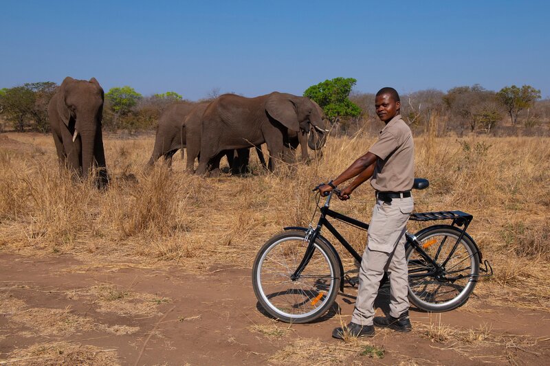 Ranger versuchen die Konflikte zwischen Wildtieren und der Dorfbevölkerung möglichst gering zu halten. Mit Fahrrädern schauen sie jeden Tag, ob sich Elefanten zu nah an die Felder heranwagen.