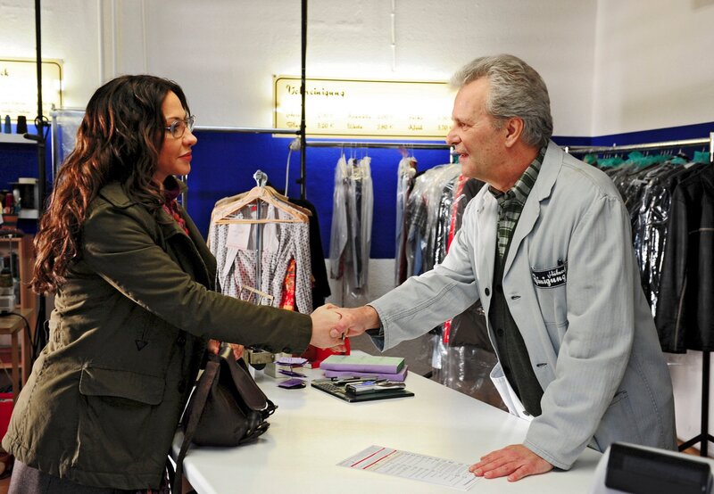 Alexandra (Simone Thomalla, l.) stellt sich in der Reinigung von Ewald Hübner (Peter Sattmann) und Elvira (Katharina Schubert) vor.Bild: © MDR/ARD Degeto/Christiane Pausch