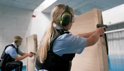 Leonie Funke (r) beim Schießtraining im Ausbildungszentrum Selm-Bork.Bild: © WDR/betabande