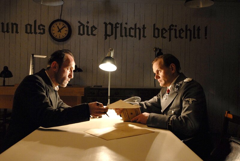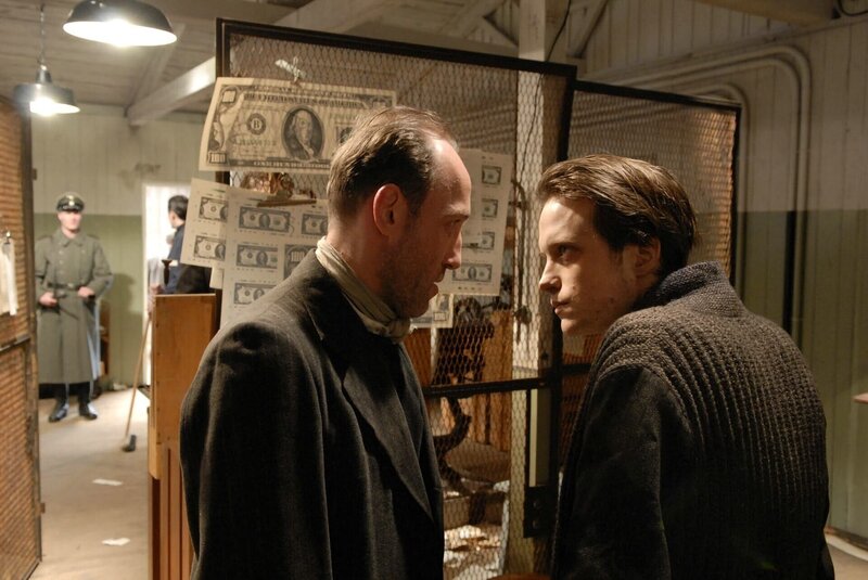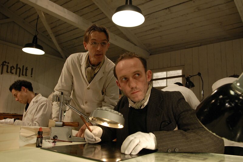 Berlin, 1936. Salomon Sorowitsch (Karl Markovics) ist der König der Fälscher. In seiner Welt der Ganoven, Gigolos und leichten Mädchen ist das Leben ein Spiel, und das dazu notwendige Geld druckt er sich selbst. Er wähnt sich denn auch auf der schönen und sicheren Seite des Lebens. Scheinbar, denn wegen der schönen Aglaia (Marie Bäumer) bleibt er zu lange in seinem Versteck und wird verraten. Kommissar Herzog (Devid Striesow) vom Falschgeld-Dezernat verhaftet ihn und steckt den Juden Sorowitsch zuerst ins Gefängnis, später ins Konzentrationslager. Die folgenden Jahre überlebt Sorowitsch dank Ausdauer, Cleverness und der richtigen Portion Demut. Seine herausragende Begabung als Maler und Künstler rettet ihn immer wieder vor der Gaskammer. Als man ihn 1944 ins KZ Sachsenhausen überführt, scheint sein Ende gekommen. Doch das Leben hält eine letzte Chance für ihn bereit: Bei seiner Ankunft empfängt ihn Kommissar Herzog, der inzwischen als SS-Offizier zum Leiter einer Geheimmission befördert worden ist. Der prekäre Kriegsverlauf soll mithilfe von Falschgeld abgewendet werden. Millionen von Pfund- und Dollarblüten sollen die feindliche Wirtschaft überschwemmen und lahmlegen. Für diesen Zweck haben die Nazis in zwei Spezialbaracken in Sachsenhausen eine exklusive Fälscherwerkstatt eingerichtet. Die Spezialisten haben sie dank alter Polizeiakten aus den verschiedenen Konzentrationslagern zusammengesucht. Profifälscher Sorowitsch soll nun die Herstellung von hochklassigen Blüten vorantreiben. Unterstützt wird er von Burger (August Diehl), Kolja (Sebastian Urzendowsky), Zilinksi (Andreas Schmidt), Doktor Klinger (August Zirner) und anderen Gefangenen, allesamt handverlesene Drucker und Grafiker. Mit Privilegien wie sauberen Betten, gutem Essen und verschiedenen Freiheiten geködert sollen sie mit einem Kraftakt ihren gnadenlosen Peinigern zum Sieg verhelfen. Sorowitsch und seine Leidensgenossen geraten in einen traumatisierenden moralischen Konflikt.