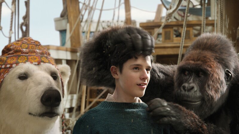 L-R: Gans Dab Dab (Octavia Spencer), Eisbär Yoshi (John Cena), Papagei Poly (Emma Thompson), Dr. John Dolittle (Robert Downey Jr.), Tommy Stubbins (Harry Collett) und Gorilla Chee-Chee (Rami Malek)Bild: © ORF/Universal