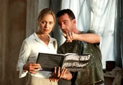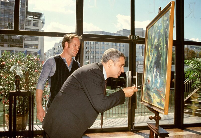 Die attraktive Susanne traut ihren Augen kaum, als ihr Lebensgefährte Ulli ihr einen Kunstmaler vorstellt, der ein Ölgemälde von ihr anfertigen soll: Markus Marberg ist ein alter Schulkamerad von ihr - allerdings einer, den Susanne nie ausstehen konnte. Zunächst lehnt die Mittdreißigerin jeden weiteren Kontakt mit dem "Ekel" ab. Nach einer Weile gestehen sich die beiden jedoch, dass sie in Wahrheit früher heimlich ineinander verliebt waren. Und es dauert nicht lange, bis die alte Liebe zwischen dem frech-charmanten Künstler und der selbstbewussten Ex-Profisportlerin neu entflammt. "Die Farben der Liebe" ist eine turbulente romantische Komödie. In den Hauptrollen sind Katja Weitzenböck, Heio von Stetten, Hansa Czypionka und Rosemarie Fendel zu sehen. Der erfolgreiche Berliner Anwalt und Kunstliebhaber Ulli Kanter (Hansa Czypionka) überrascht seine Lebensgefährtin Susanne Pauli (Katja Weitzenböck) mit einer ganz besonderen Idee: Er hat einen Kunstmaler engagiert, der Susanne großformatig in Öl porträtieren soll. Susanne ist allerdings nicht sonderlich erfreut über diesen Einfall. Ihr Unbehagen steigert sich zu offener Ablehnung, als Ulli den Künstler zum Abendessen mit nach Hause bringt. Denn es stellt sich heraus, dass es sich bei Markus Marberg (Heio von Stetten) um einen alten Schulkameraden von Susanne handelt. Der Haken bei der Sache: Der chaotische Markus und die strebsame Susanne konnten sich nicht ausstehen. Als Markus die Abendunterhaltung auch noch mit Anekdoten von "Strebi" Susanne bestreitet, hat diese genug. Sie gibt Ulli unmissverständlich zu verstehen, dass sie für Markus keinesfalls Modell stehen wird. Ulli hingegen findet Markus überaus sympathisch und besorgt dem mittellosen Maler sogar eine neue Unterkunft bei der weltoffenen Künstlerwitwe Maria Kornblum (Rosemarie Fendel). Auch Susannes Teenager-Sohn Tobias (Ivan Spirandelli) ist von dem neuen "Freund der Familie" total begeistert, nicht zuletzt deshalb, weil der kreative Markus ihm praktische Tipps gibt, wie er das Herz seiner Schulkameradin Louise (Isabell Grohe) gewinnen kann. Nur Susanne reagiert ziemlich giftig, wann immer sie Markus begegnet. Aber wie es so schön heißt: Was sich liebt, das neckt sich. Als Markus während einer Sommerparty auf einem Ausflugsschiff über Bord springt, eilt Susanne dem vermeintlich Ertrinkenden trotz ihrer panischen Wasserphobie zu Hilfe. Durch dieses dramatische Ereignis finden Markus und Susanne endlich zueinander. Sie beginnen eine leidenschaftliche Affäre. Dann aber erfährt Susanne, dass Markus nicht nur Künstler, sondern auch ein Kunstfälscher ist - und dass Ulli viel Geld für eine seiner Kopien bezahlt hat. Obwohl Markus sich freiwillig der Polizei stellen will, sagt sich die zutiefst enttäuschte Susanne von ihm los und beichtet Ulli die Affäre. Markus wird zu einer Haftstrafe verurteilt. Am Tag seiner Entlassung wartet vor dem Gefängnis bereits Ulli auf ihn - und er hält eine gewaltige Überraschung für den völlig verdutzten Markus bereit. Mit "Die Farben der Liebe" ist Zoltan Spirandelli eine ebenso charmante wie temporeiche Liebeskomödie gelungen. Voller Witz, Esprit und mit einigen überraschenden Wendungen erzählt der Film eine Geschichte um heimliche Liebe und verdrängte Gefühle. In den Hauptrollen glänzen Katja Weitzenböck und Heio von Stette als herrlich ungleiches Traumpaar. In weiteren Rollen sind Hansa Czypionka als leicht naiver Kunstfreund und Rosemarie Fendel als weise Witwe zu sehen.