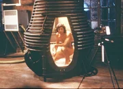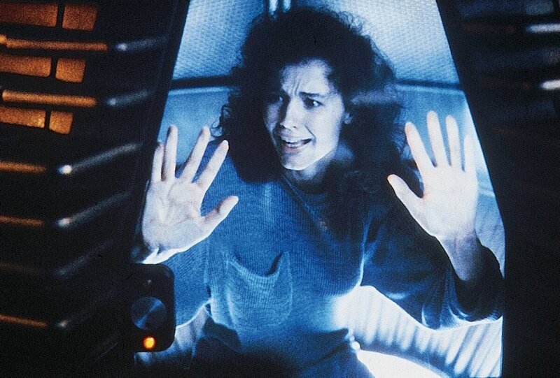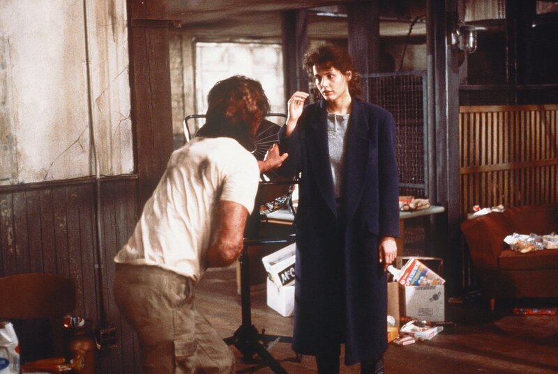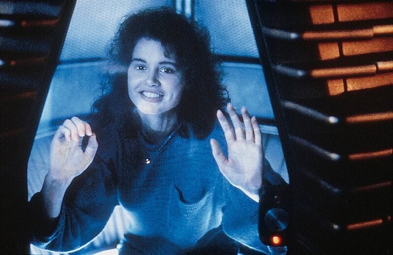 Reporterin Veronica Quaife (Geena Davis) will über Seth Brundle und dessen Teleportationsmaschine berichtenBild: © RTL Zwei