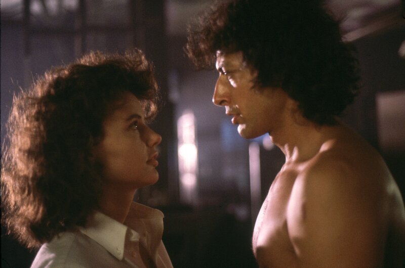 Die Fliege Eine romantische Begegnung mit ungeahnten Folgen: Geena Davis als Veronica Quaife, Jeff Goldblum als Seth Brundle Copyright: SRF/1986 Twentieth Century Fox Film CorporationBild: © SRF/1986 Twentieth Century Fox Film Corporation