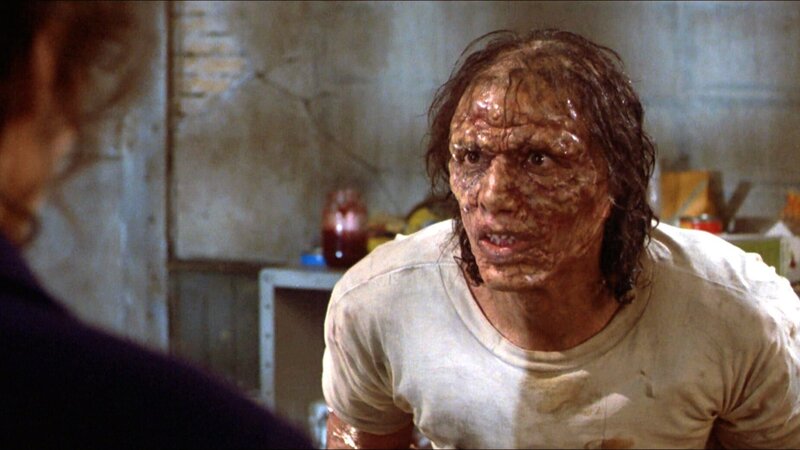 Nach einem misslungenem Experiment beginnt Seth Brundles (Jeff Goldblum) Körperstruktur immer mehr der einer Fliege zu ähneln. Ohne etwas dagegen tun zu können, durchlebt der Wissenschaftler eine entsetzliche Verwandlung in ein Insekt.Bild: © Kabel Eins Classics