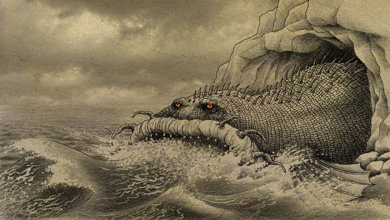 Graphic Novel: Der Legende nach saugte das Meeresungeheuer Charybdis dreimal am Tag Wasser ein, um es dann brüllend wieder auszustoßen. Schiffe, die in seinen Sog gerieten waren unrettbar verloren.Bild: © Wolfgang Makosch / ZDF