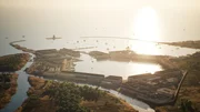 Computeranimation: Die römischen Hafenanlagen bei Ostia an der Mündung des Tibers waren lebensnotwendig zur Versorgung der Metropole Rom. Große Hafenbecken, kilometerlange Molen und riesige Lagerhäuser (Horrea) prägten über Jahrhunderte das Bild des zentralen Hafens im Imperium Romanum.Bild: © ZDF und Jörg Courtial