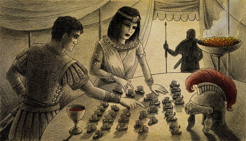 Graphic Novel: Kleopatra und Marcus Antonius bereiten sich auf die Schlacht von Actium gegen die Flotte von Oktavian vor.Bild: © Wolfgang Makosch / ZDF