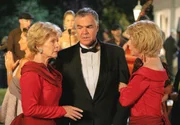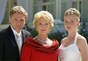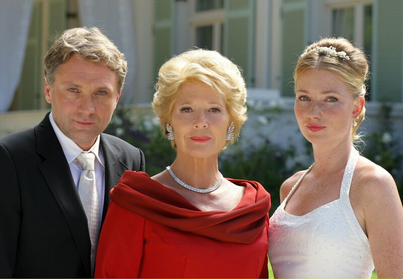 Trügerische Harmonie: Ines Kupfer (Christiane Hörbiger, Mitte) mit ihrer Tochter Nathalie (Katja Studt) und deren künftigem Ehemann Stephan (Bernhard Schir).Bild: © SWR/Degeto/Boris Guderjahn