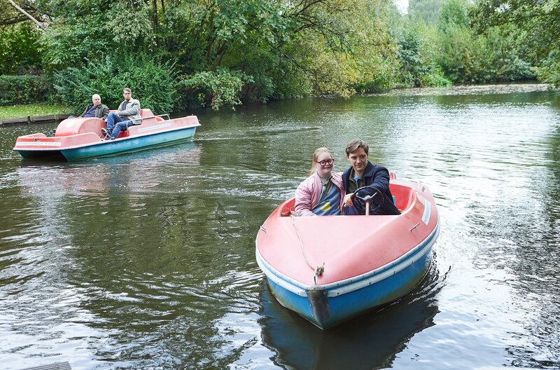 Zwei Männer sind durch einen tragischen Moment miteinander verbunden: Der eine hat einen tödlichen Unfall verursacht, der andere dabei seine Frau verloren. Wie können die beiden einander wieder begegnen? Und kann daraus etwas Gutes entstehen? Jonas Nay und Joachim Król spielen im Fernsehfilm "Die Frau in Blau" diese beiden Männer, deren Reise aufeinander zu trotz aller Verletzungen von liebevoller Heiterkeit gezeichnet ist. Der ehemalige Fotograf Denis (Jonas Nay) fühlt sich unter Druck gesetzt. Um seinen Führerschein wieder zu bekommen, muss er sich mit Alfred (Joachim Król) auseinandersetzen. Dessen Frau kam durch einen von Denis verursachten Unfall ums Leben, bei dem auch Alfred selbst schwere Verletzungen erlitt. Denis flieht seitdem nicht nur aus seinem alten Leben, sondern auch vor der Begegnung mit Alfred. Nur weil die amtliche Psychologin darauf besteht, überwindet er sich und sucht Alfred endlich auf. Zunächst scheint es ihm, er hätte nochmal Glück gehabt: Alfred kann sich wegen der Hirnverletzungen weder an seine Frau noch an den Unfall erinnern. Er hat sich der Malerei zugewandt und ist ein zufriedenes, integriertes Mitglied einer Ateliergemeinschaft geistig eingeschränkter Künstler:innen. Sei es Alfreds spezieller Charme, sei es die tragische Aura eines Gemäldes, das von dem Unfall inspiriert scheint - nach erstem Widerstreben lässt Denis sich in Alfreds Leben hineinziehen. Er wird sogar zu Alfreds Helfershelfer, als sich ein Käufer ausgerechnet das Bild aussucht, an dem der Maler mehr hängt als an allen anderen zusammen. Auf gar keinen Fall will Alfred es aufgeben. Lieber sitzt er Wache vor der Galerie, um die Abholung zu verhindern. Die Wiederbeschaffung wird für Denis und Alfred zum mühsamen Hindernisparcours nicht ohne absurde Momente. Und fast nebenbei ändert sich beider Leben ein weiteres Mal.