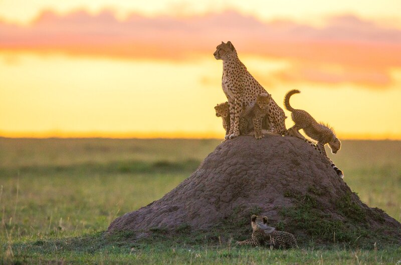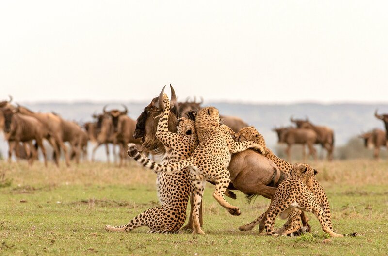 In der nördlichen Serengeti jagen fünf Geparden im Verbund, um größere Beutetiere zu jagen. Es ist das größte Bündnis von Geparden, das jemals beobachtet wurde. Dieser Film hat viele Geschichten über die schlanken Jäger zu bieten. Geparde sind die Hochgeschwindigkeitsjäger der Savanne. Nur wenige wagen sich auch an größere Beute. Doch manchmal zeigen sich die Raubkatzen von einer überraschend anderen Seite. In der nördlichen Serengeti tauchen fünf Männchen auf, die alles auf den Kopf stellen. Es ist das größte Bündnis von Geparden, das jemals beobachtet wurde. Dieser Film hat viele Geschichten über die schlanken Jäger zu bieten. Eine erfahrene Mutter bringt ihren männlichen Nachkommen die letzten Feinheiten der Jagd bei, bevor sie den Nachwuchs in die Unabhängigkeit entlässt. Das Weibchen hat sich in eine gute Ausgangsposition gebracht. Geduldig wartet sie, bis die Gnus dicht genug bei ihr sind. Ein junges Weibchen steht vor ganz anderen Problemen, es hat vier Jungtiere zu versorgen. Die Kleinen müssen jeden Tag mehrere Kilometer zurücklegen. Lange mustert die Mutter die Umgebung, doch die Löwin in den Büschen hat sie nicht bemerkt. Die Löwin beobachtet sie dagegen schon lange: Fleischfresser sind untereinander Konkurrenten! Die fünf Gepardenmännchen beschatten nach mehreren erfolglosen Jagdversuchen eine Herde. Nachdem einer von ihnen durchstartet, bricht unter den Gnus Panik aus. In diesem Chaos den Überblick zu behalten ist eine Herausforderung für die Geparde. Ihr Opfer ist ein 200 Kilogramm schweres Gnu. Beute, die für ein einzelnes Männchen viel zu groß wäre. Doch die vielen Monate des Jagdtrainings zahlen sich aus. Für diesen Film reiste Tierfilmer Reinhard Radke in die nördliche Masai Mara, um Geparde in Situationen zu filmen, wie man sie noch nie zuvor gesehen hat. Dabei gelangen ihm nicht nur spektakuläre Aufnahmen von der Jagd, sondern auch rührende Familiengeschichten zweier Mütter, die ihren Nachwuchs großziehen.