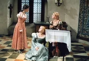 1. Die zarte und ängstliche Prinzessin Aurinia (Dana Morávková, Mi.) lebt mit ihrer selbstbewußten Kammerjunfer Liesa (Michaela Kuklová, li.) wie mit einer Schwester zusammen. Auch Aurinias Mutter, die junge Königin (Regina Beyer, re.) ist Liesa zugetan.Bild: © ZDF/cine aktuell Filmgesellschaft