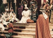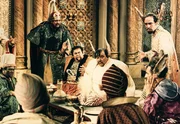 Der Sultan (Alwin Lippisch, M.) und seine Untertanen machen sich lustig über den kleinen Muck (Thomas Schmidt, vorne), der behauptet, sich als Oberleibläufer qualifizieren zu können.Bild: © ZDF/Cine Aktuell