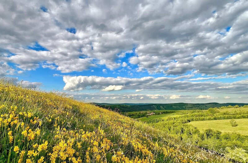 Im Hochland Transsylvaniens existieren noch großflächige Allmendeweiden, auf denen Rinder, Wasserbüffel und Pferde in kleinen Stückzahlen grasen – der Lebensraum des Orangeroten Heufalters.