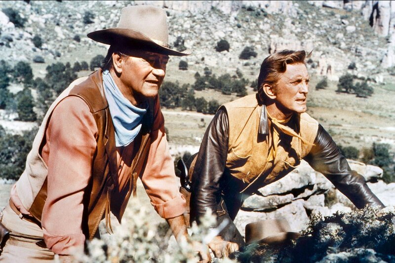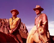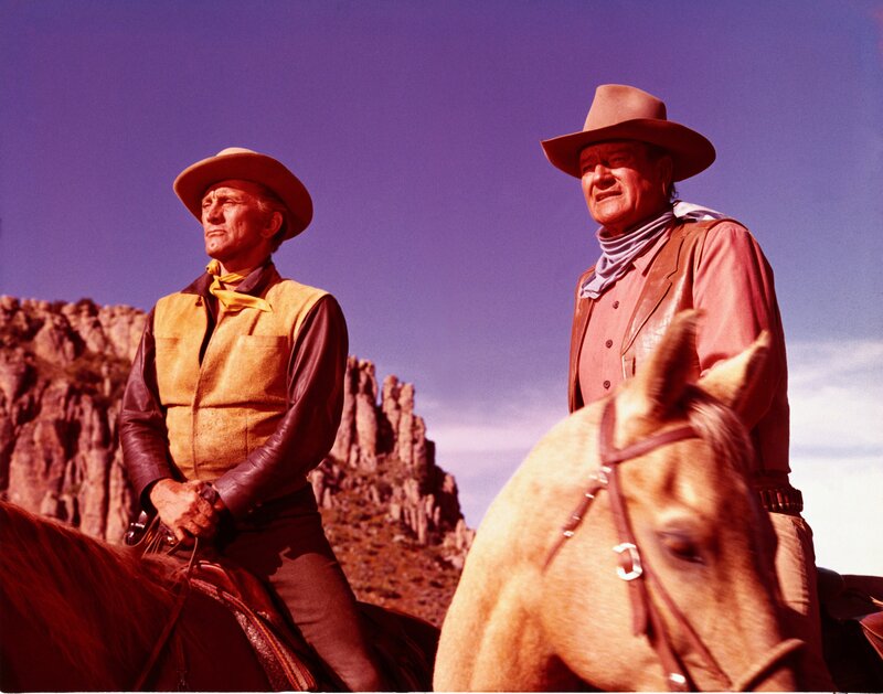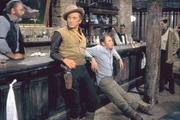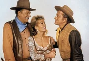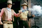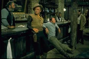 Der Revolverheld Lomax (rechts: Kirk Douglas) macht gemeinsame Sache mit Taw Jackson (links: John Wayne). Die beiden planen, die gepanzerte Kutsche, mit der Pierce das Gold abtransportieren will, zu überfallen.