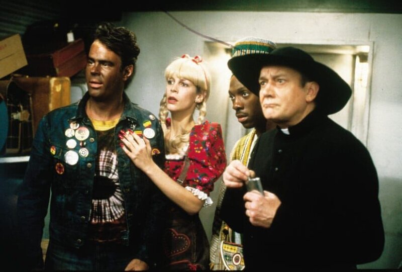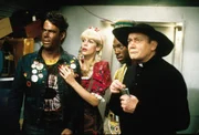 Louis (Dan Aykroyd, l.), Ophelia (Jamie Lee Curtis,2.v.l.), Billy Ray (Eddie Murphy,2.v.r.)Bild: © MKNS