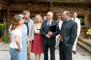 „Die Hüttenwirtin", Improvisationskunst ist gefragt, als Sandra von ihrem Vater die Almwirtschaft 'Hüttenwirt' erbt. Inzwischen mehr Stadtmensch als Kind der Berge, hat die Werbefachfrau mit Gastronomie rein gar nichts am Hut und will sich daher von der Berghütte so bald als möglich trennen. Doch als Sandra nach Tirol reist, um den Verkauf abzuwickeln, merkt sie schnell, dass das Schicksal wohl anderes mit ihr vor hat. Die Liebe zur alten Heimat flammt wieder auf - zusammen mit Sandras unerschrockenem Kampfgeist. Im Bild (v.li.): Christina Plate (Sandra Hofer), Elfi Eschke (Theres Färber), Maximilian Krückl (Karli Moser), Susanna Knechtl (Katti Lang), Fritz Egger (Anwalt Streibl), August Schmölzer (Xaver Riemer).Bild: © ORF/Mona Film