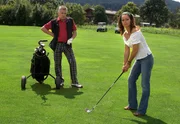 Sandra (Christina Plate) möchte den Golfclub-Besitzer Gerhard Embacher (Stefan Matousch) dazu überreden, seinen Geburtstag wie immer im "Hüttenwirt" zu feiern.Bild: © NDR/ARD Degeto/Mona Film/Leo Frankl