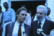 Eigentlich will der erfahrene, aber in seiner Karriere gescheiterte Anwalt Lucien Wilbanks (Donald Sutherland, r.) nie wieder einen Gerichtssaal betreten. Doch nun agiert er als Mentor für den noch unerfahrenen Anwalt Brigance (Matthew McConaughey, l.) in einem hoch brisanten Fall ...Bild: © Kabel Eins Classics