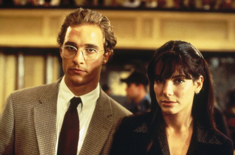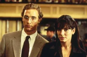 Der blutjunge Verteidiger Jake Brigance (Matthew McConaughey, l.) übernimmt den aussichtslosen Fall Hailey. Von unerwarteter Seite bekommt er Hilfe: Ellen Roark (Sandra Bullock, r.), Expertin im Aufspüren wichtiger Präzedenzfälle ...Bild: © Kabel Eins Classics