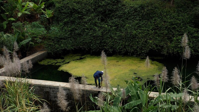 Das ausgeklügelt bewässerte Vale de Paúl auf der kapverdischen Insel Santo Antão zeigt sich in üppigem Grün.Bild: © ZDF und Julien Bur.