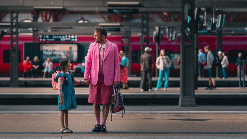 Petra (Amelia Ahmad Abdullatif, links) und Miss Nelly (Jakob Fauerby, rechts) warten zusammen auf den Zug. Petra ist ganz neugierig. Wo es wohl hingeht?Bild: © ZDF/Georg Bussek
