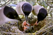 Elstern sind monogam und bleiben ein Leben lang als Pärchen zusammen. Deshalb werden die ersten PartnerInnen auch sehr sorgfältig ausgesucht.Bild: © WDR/Text und Bild Medienproduktion/Dietmar Nill