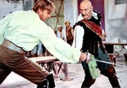Luis Monterey (Lex Barker, l.), der durch Verrat seine Kapitänsehre verloren hat, kämpft gegen Olonese (Livio Lorenzon), dem Anführer der Piraten auf Tortuga.Bild: © MDR/COLOSSEO FILM