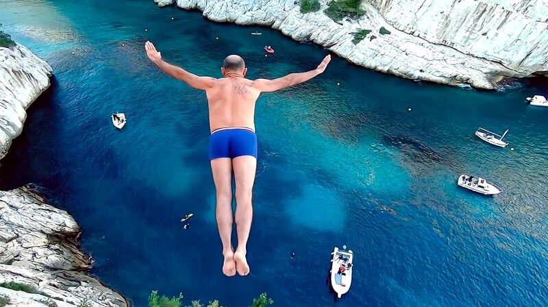 Kleine versteckte Strände, charmante Hafenstädtchen, imposante Felsbuchten und dieses einzigartige, klare Licht lockten schon Maler wie Cézanne oder Braque an die Küste der Provence. Das tiefblaue Wasser gab der Küste ihren Namen, die sich von Marseille bis Martigues erstreckt. Das Städtchen wird auch Venedig der Provence genannt, weil es ganz vom Wasser geprägt ist: von einem Binnensee, dem Meer und dem verbindenden Kanal. In den Buchten der Calanques, der steilwandigen Küsteneinschnitte im Kalkgestein des Mittelmeers, ist Lionel Franc Klippenspringer. 36 Meter sind sein persönlicher Rekord. Ambi ist Bildhauerin. Ein dynamischer Schwung zeichnet die Werke der jungen Künstlerin aus, die vor vielen Jahren aus Madagaskar nach Marseille kam. Diesen Schwung beweist sie auch als leidenschaftliche Pétanque-Spielerin auf den Bouleplätzen der Hafenstadt. John Pendray ist Peintre officiel de la Marine, ein offizieller Marinemaler. Nur 40 Maler nimmt der französische Staat in seinen Kreis auf. Es gibt zwar kein Salaire, aber jede Menge Ehre und eine schmucke Uniform!