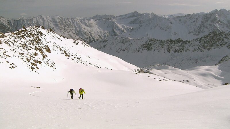 Tourengeher. Schützende Infrastruktur und Frühwarndienste, richtiges Verhalten in Notsituationen, so versucht man der weißen Gefahr Herr zu werden, eine permanente Herausforderung für Bergbewohnerinnen und Bergbewohner, die Forschung, Alpinisten oder den Wintertourismus.Bild: © 3sat