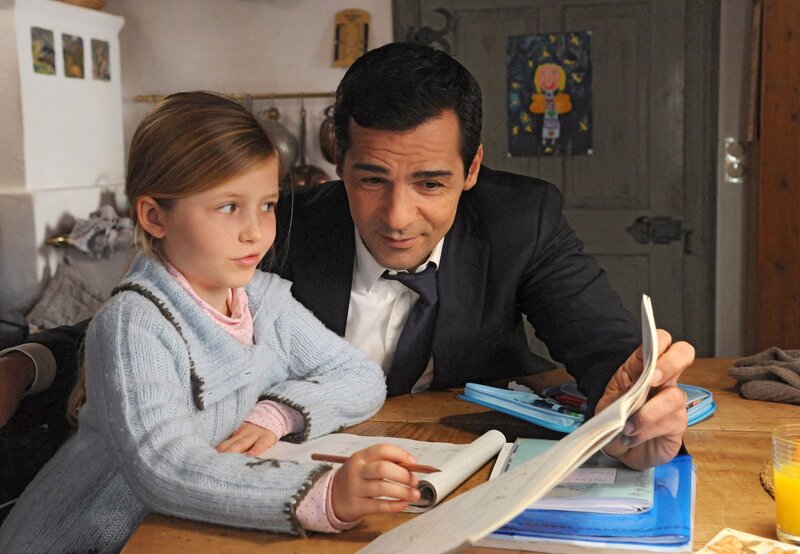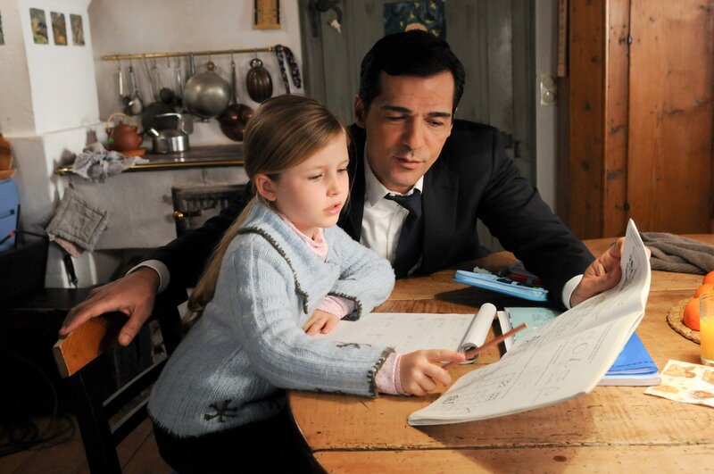 Der alleinerziehende Vater Martin Haller (Erol Sander) kümmert sich um die Hausaufgaben seiner Tochter Katrin (Elisabeth Thomashoff).Bild: © ARD Degeto/Mona Film/ORF/Oliver Roth