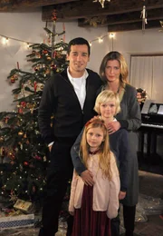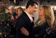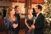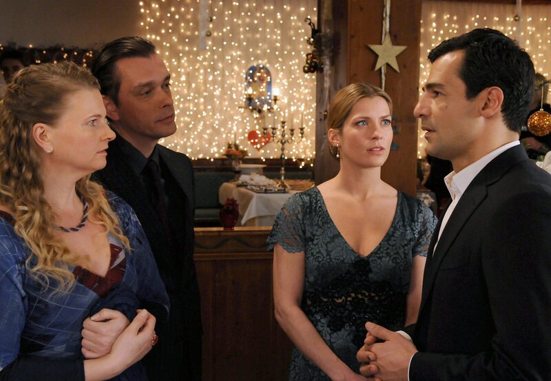 Martin Haller (Erol Sander, links) und seine Tochter Katrin (Elisabeth Thomashoff, vorne) freuen sich auf ein Weihnachtsfest mit Annemarie (Valerie Niehaus) und deren Sohn Peter (Nico Liersch).Bild: © ORF