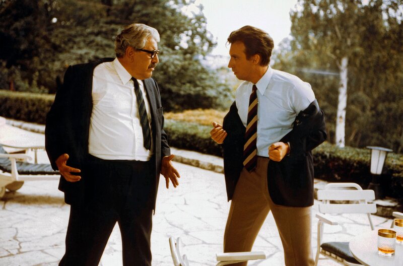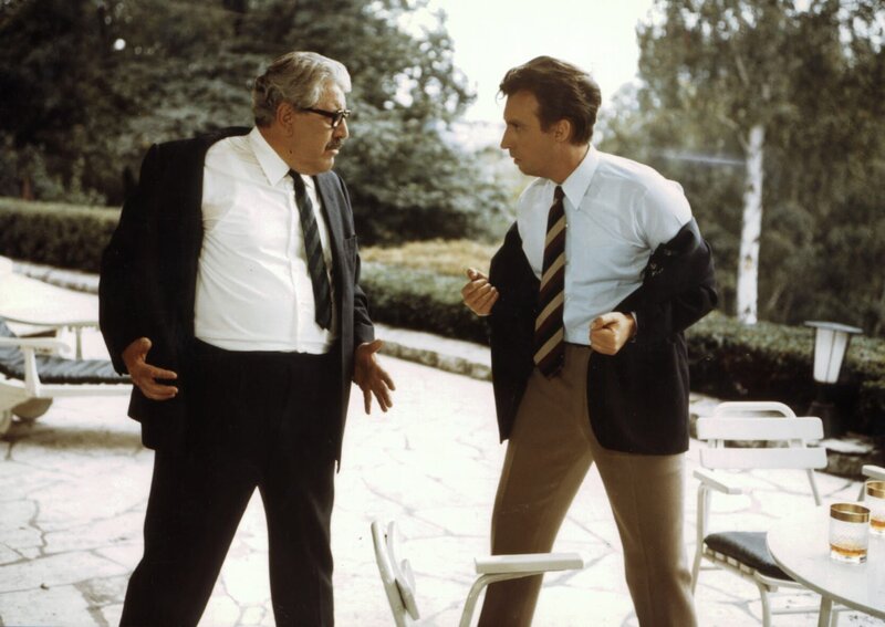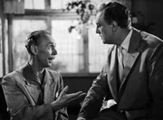 Wegen seiner unkonventionellen Lehrweise gerät der Austauschlehrer Dr. Tell alias Dr. Peter Roland (Peter Alexander) mit Kurt Notnagel (Willy Millowitsch, links), dem Vater des Schülers Pepe und dessen liebreizender Schwester Marion, aneinander.Bild: © MDR/Kineos