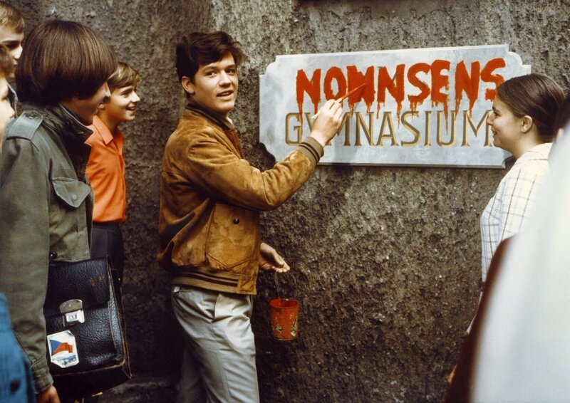 Oberlümmel Pepe Notnagel (Hansi Kraus, M.) macht aus dem Baden-Badener Mommsen-Gymnasium das "Nonsens"-Gymnasium. (Andere Darsteller nicht bekannt.)Bild: © ZDF und Terra Filmkunst GmbH